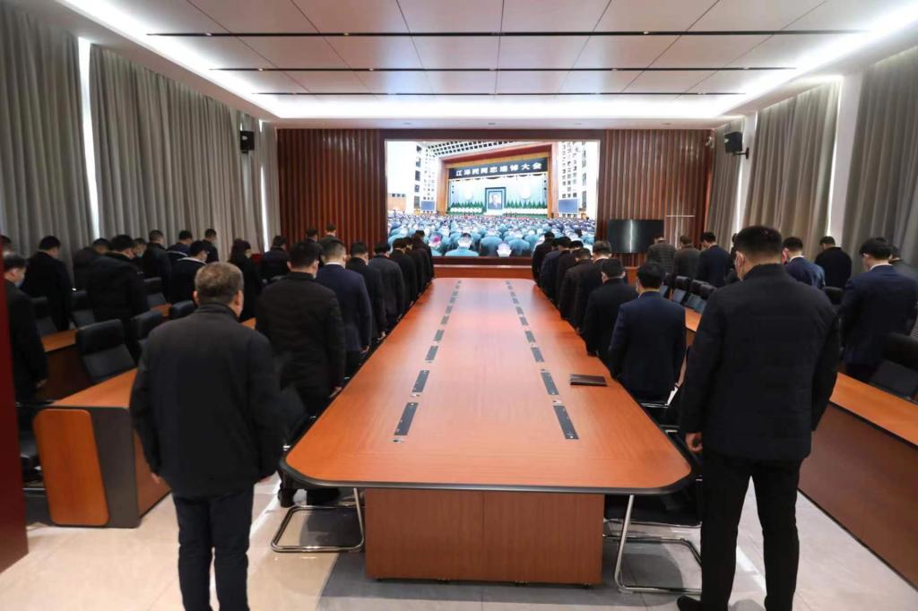 上午10時,江澤民同志追悼大會開始。集團辦公中心2021會議室內莊嚴肅穆。淮北礦業集團及淮北礦業領導方良才、孫方、葛春貴、許建清、周四新、周衛金、汪琳、劉杰、邵華、孟德軍、朱世奎、聶政,集團機關及駐辦公中心單位負責人,全體肅立,在悲壯的哀樂聲中默哀三分鐘。在追悼大會中,大家全程肅立,認真聆聽習近平總書記所致的悼詞,追憶江澤民同志偉大光輝的一生。追悼大會結束時,大家向江澤民同志遺像深深三鞠躬。