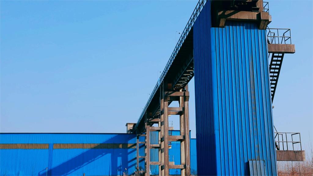 楊柳礦建成投運1200米全封閉高空排矸棧橋及矸石大棚,實現礦區地面無塵化運輸。(郗桂昌 攝)