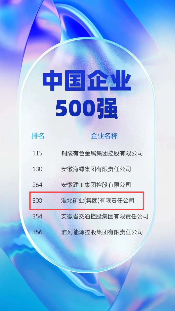 淮北礦業集團進入“2024中國企業500強”榜單!